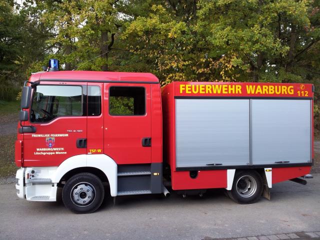 Gemäß dem aktuellen Brandschutzbedarfsplan der Stadt Warburg wurde die Fahrzeugbeschaffung fortgesetzt und für die Löschgruppe Menne ein TSF-W mit 750 l-Tank und der für Warburg üblichen Stadardbeladung beschafft. Das Fahrzeug ist ein MAN-Fahrgestell TGL 8.180 mit einem Aufbau der Fa. Schlingmann.