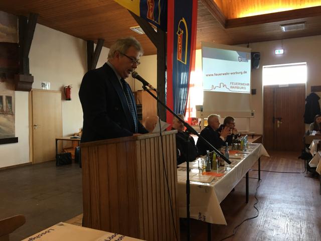 Der Leiter der Feuerwehr berichtet über das vergangene Jahr. (Foto: Feuerwehr warburg)