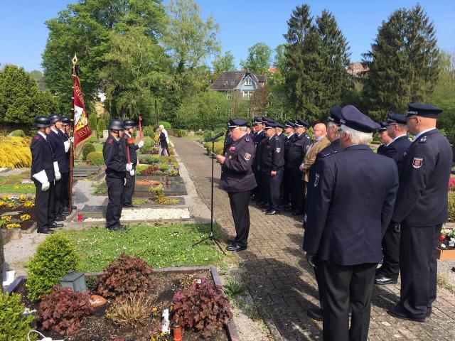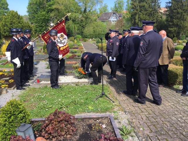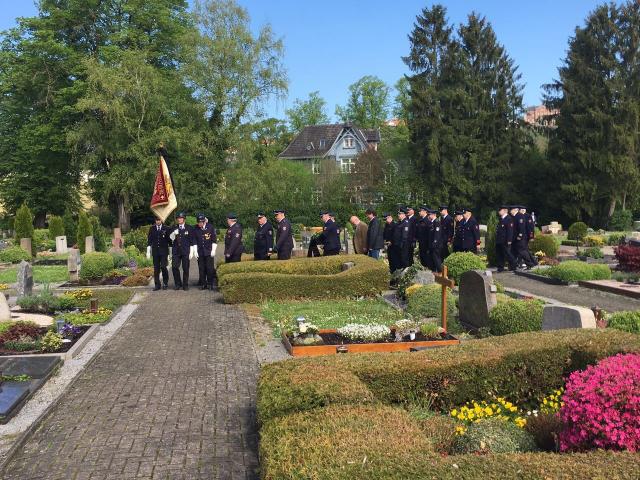 Heute am 14. Mai 2017 zum 60 Jährigem Todestag des Verstorbenen Oberfeuerwehrmann Johannes Balluff, Versammelten sich der Löschzug Warburg, Ordnungsverwaltung der Hansestadt Warburg und Zeitzeugen der Ehrenabteilung auf dem Warburger Antoniusfriedhof in der Altstadt zu einer Gedenkzeremonie. Oberfeuerwehrmann Johannes Balluff wurde beim Großbrand der damaligen Warburger Papierfabrik Kuhlemühle am 10./11. Mai 1957 so schwer verletzt, das er am 14. Mai 1957 seinen schweren Brandverletzungen erlag und starb.